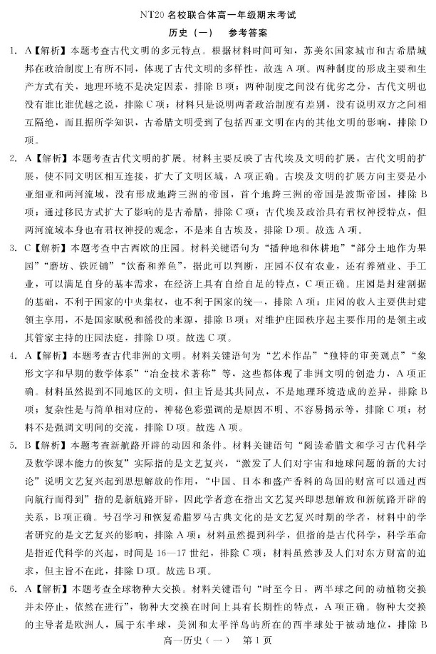 河北省NT20名校联合体2024-2025学年高一下学期期末考试历史答案