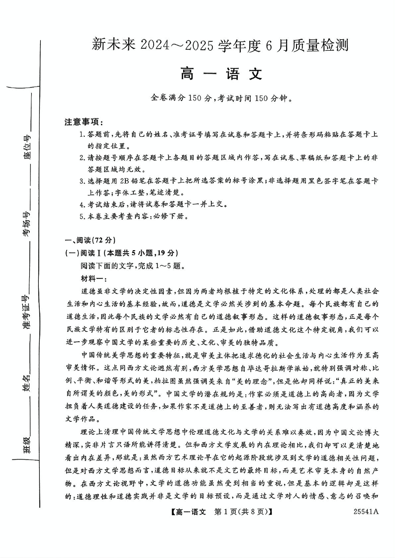 河南省新未来2024-2025学年高一下学期6月质量检测语文+答案
