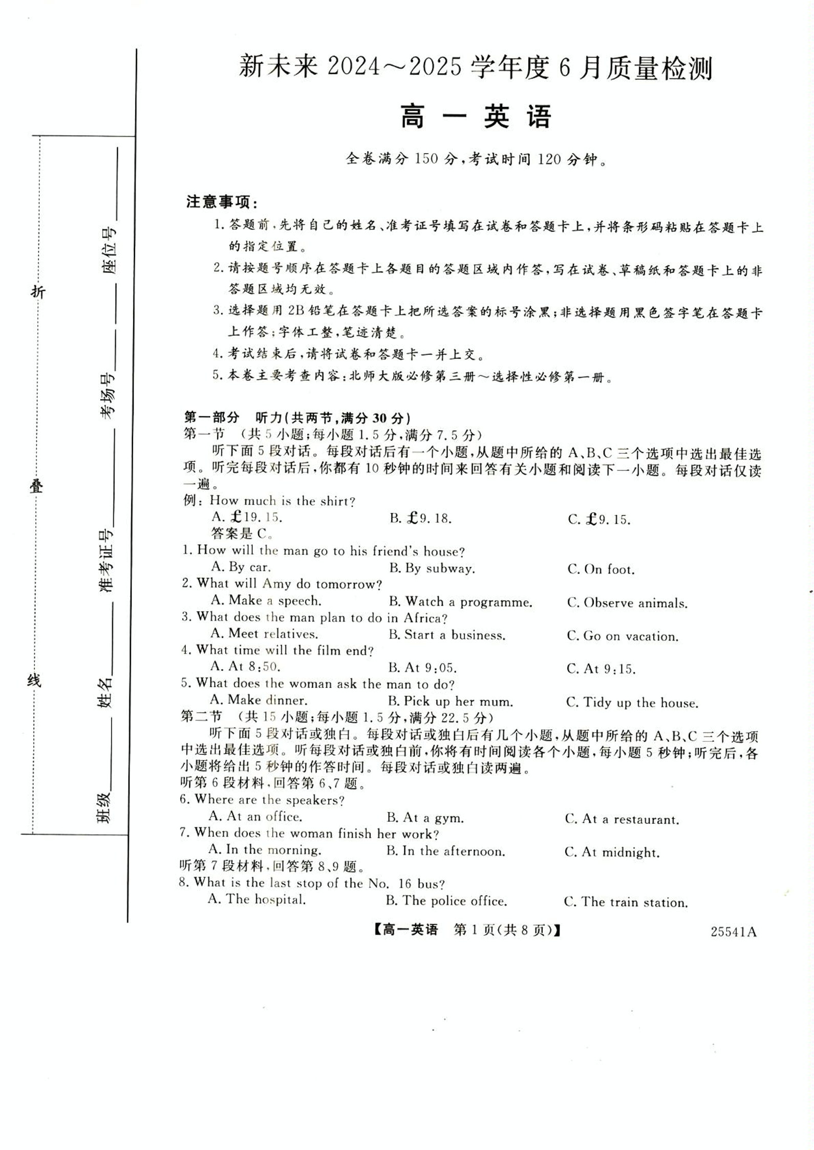 河南省新未来2024-2025学年高一下学期6月质量检测英语