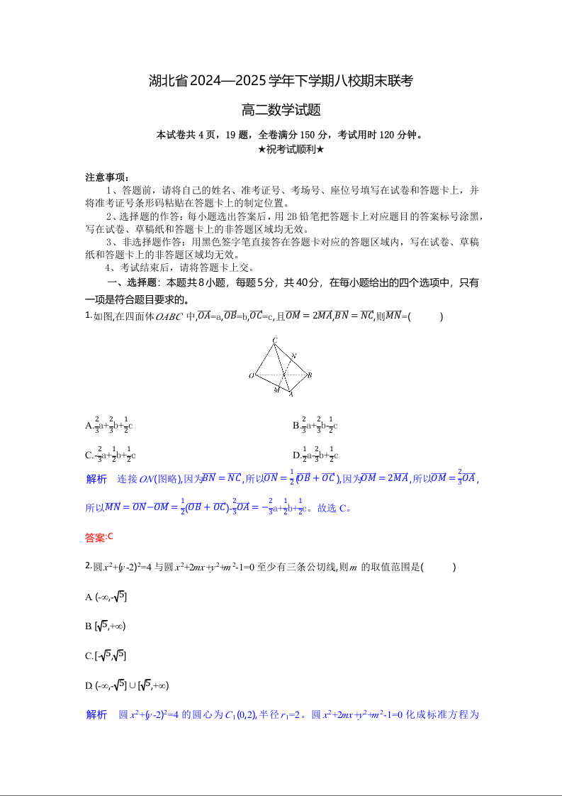 湖北省八校联考2024-2025学年高二下学期6月期末数学(解析板)