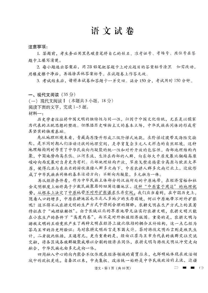 贵州省贵阳市第一中学2024届高三适应性月考(八)语文