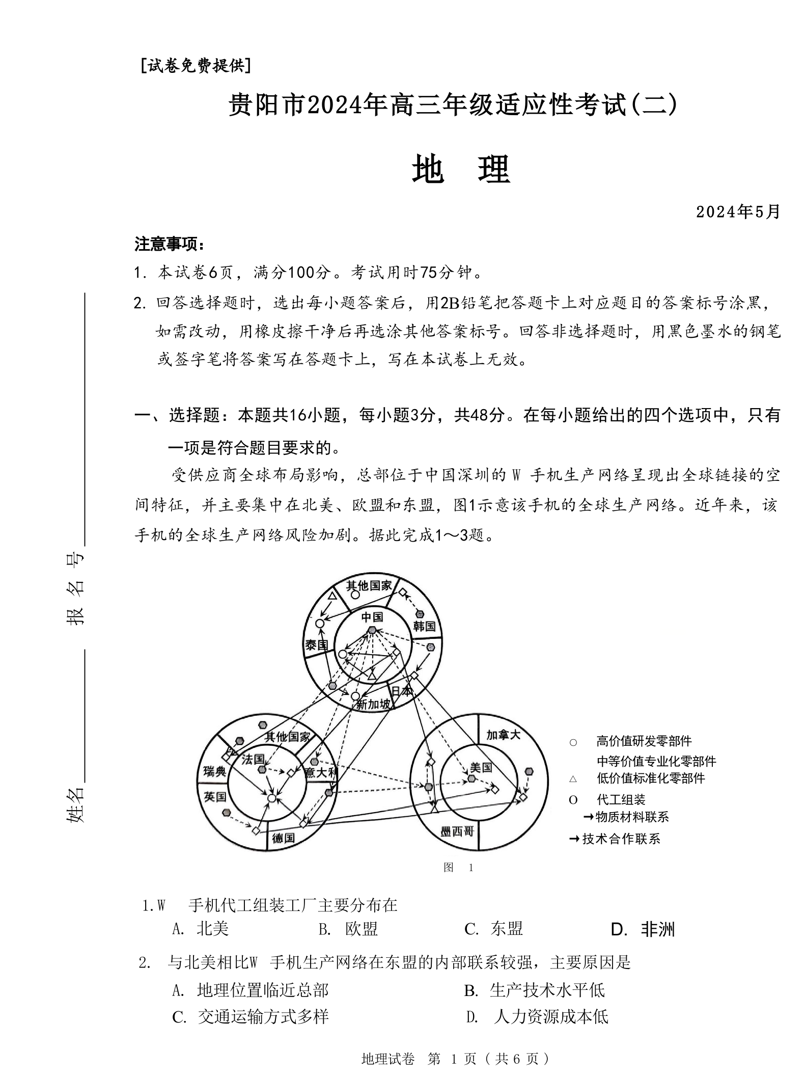 贵州省贵阳市2024届高三5月适应性考试(二)地理+答案