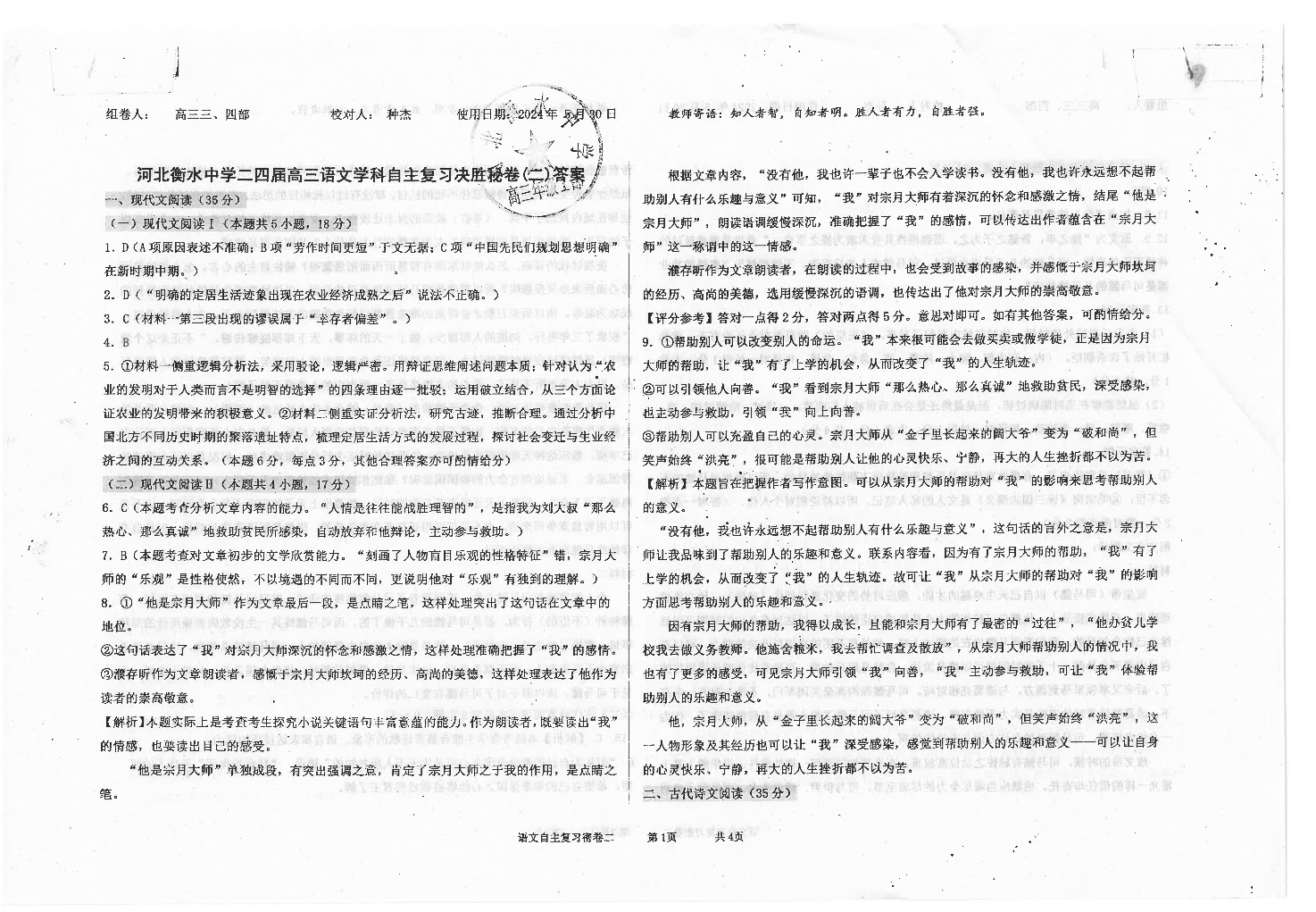河北省衡水中学2024届高三下学期高考押题密卷(二)语文答案