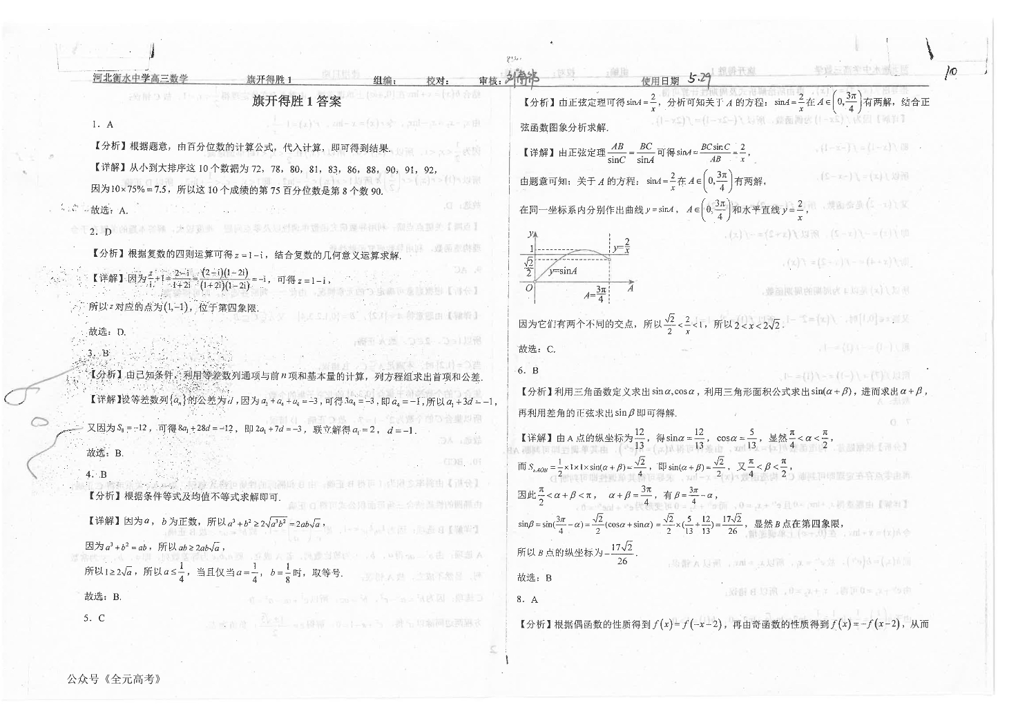 河北省衡水中学2024届高三下学期高考押题密卷(一)数学答案