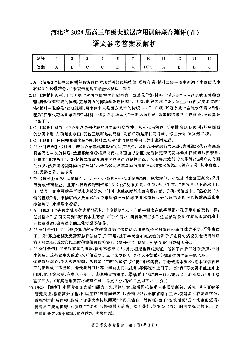 河北省2024届高三下学期大数据应用调研联合测评语文答案