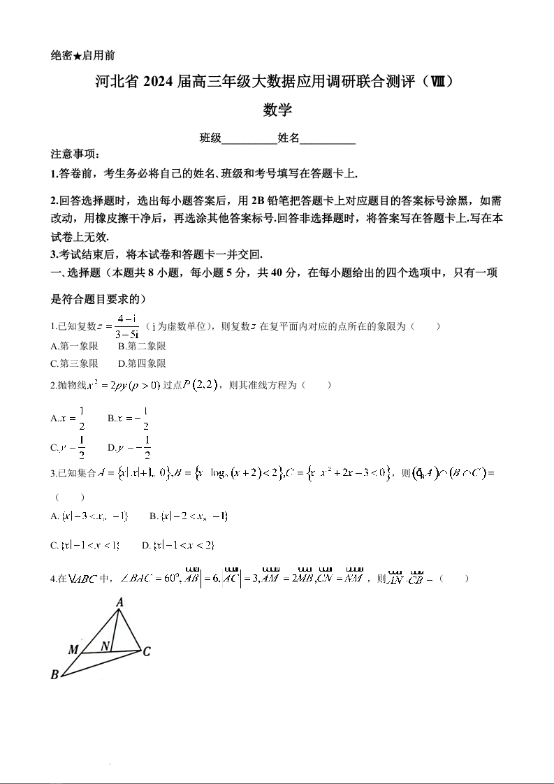 河北省2024届高三下学期大数据应用调研联合测评数学