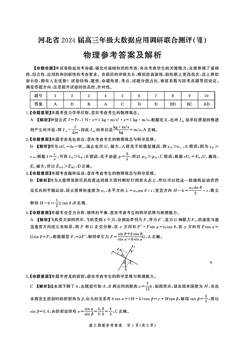 河北省2024届高三下学期大数据应用调研联合测评物理答案