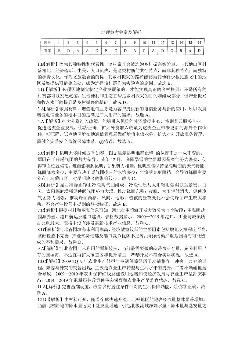 河北省2024届高三下学期大数据应用调研联合测评地理答案