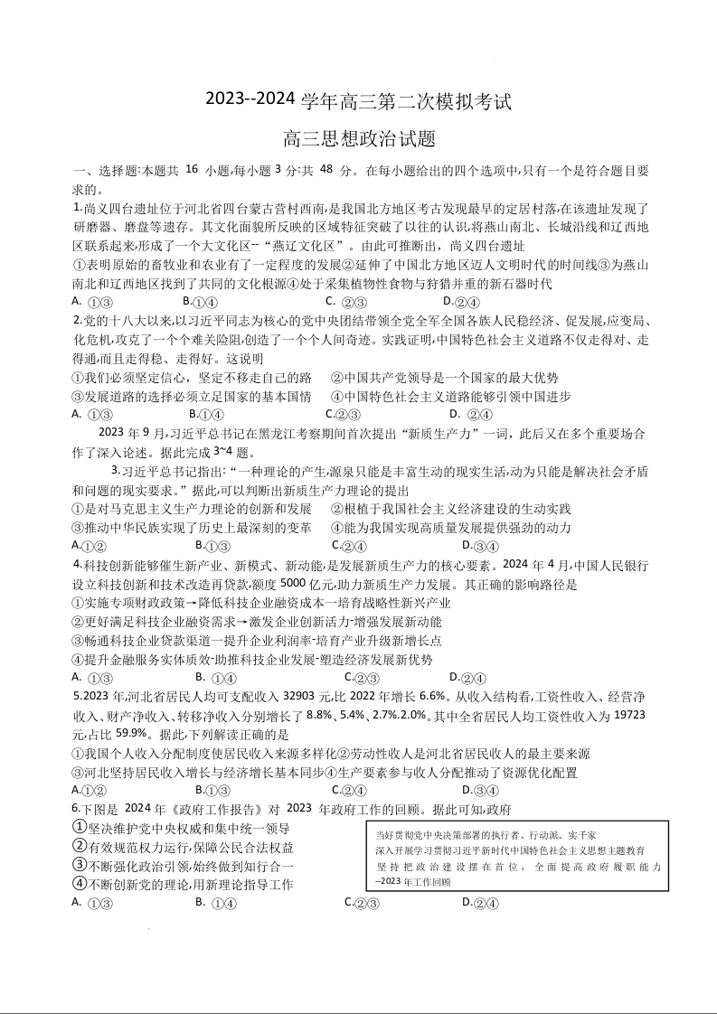 河北省保定市2024届高三二模政治