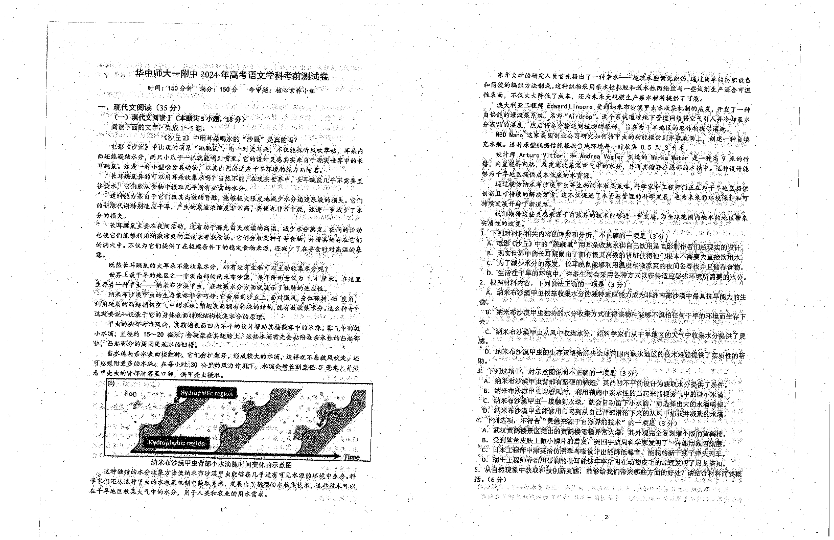 湖北省武汉市华中师范大学第一附属中学高三考前素养测试卷语文