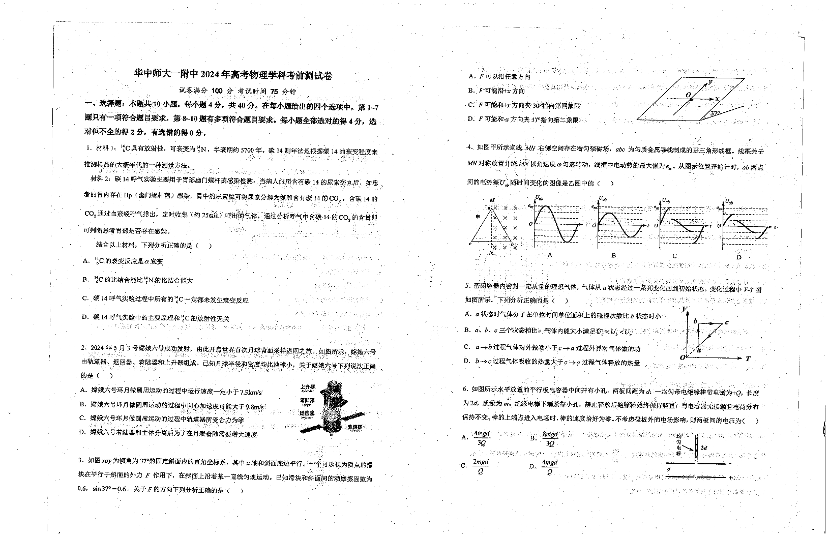 湖北省武汉市华中师范大学第一附属中学高三考前素养测试卷物理
