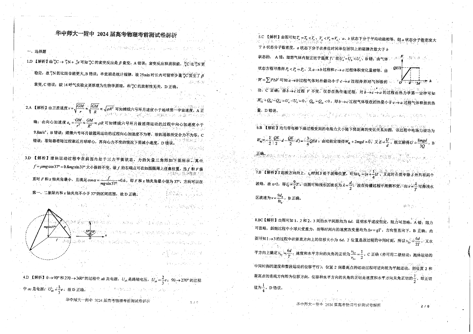 湖北省武汉市华中师范大学第一附属中学高三考前素养测试卷物理答案