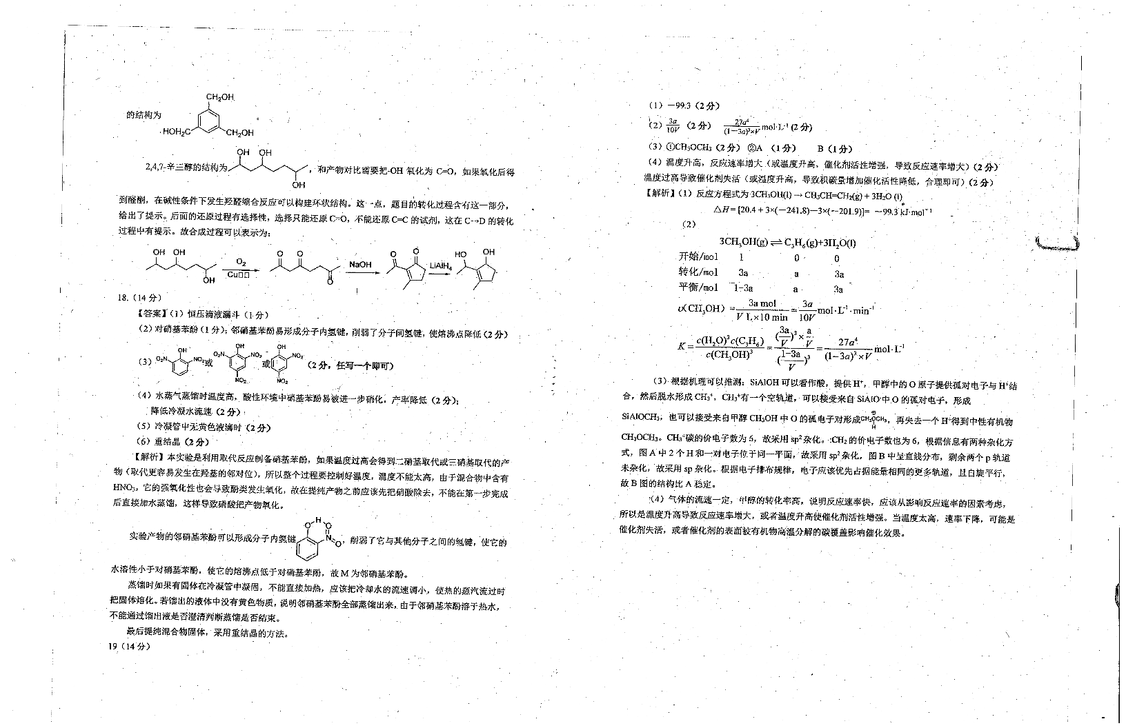 湖北省武汉市华中师范大学第一附属中学高三考前素养测试卷化学答案