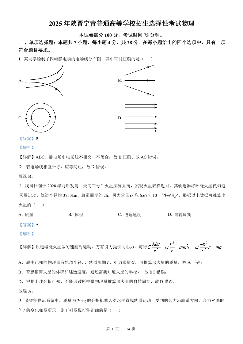 2025年物理高考真题(解析版)--陕西、山西、青海、宁夏卷