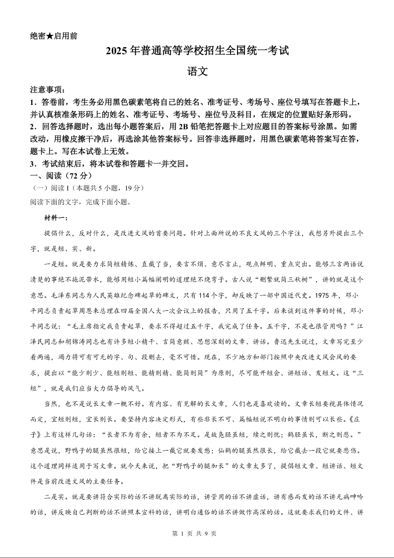 2025年语文高考真题--全国二卷