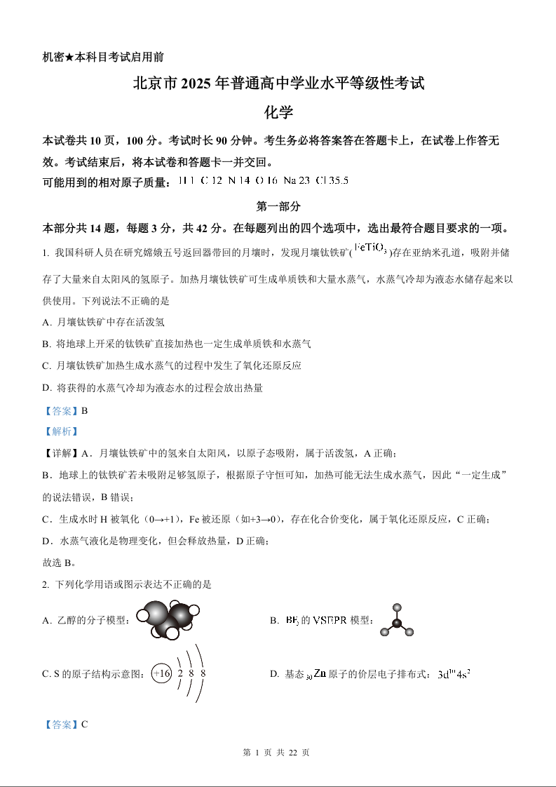 2025年化学高考真题(解析版)--北京卷