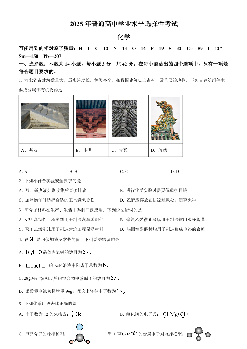 2025年化学高考真题--河北卷