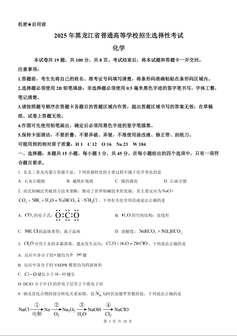 2025年化学高考真题--黑龙江、吉林、辽宁、内蒙古卷
