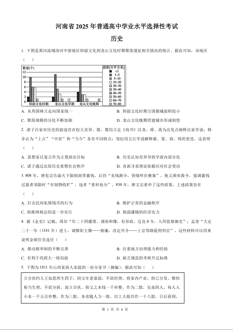 2025年历史高考真题--河南卷