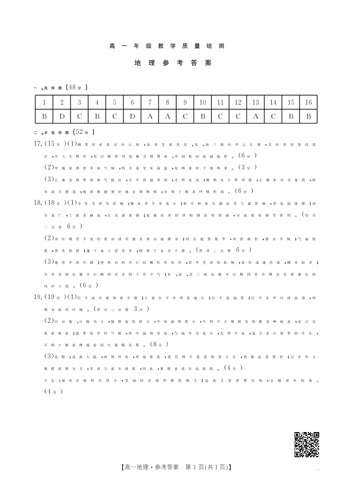 安徽省阜阳市2024-2025学年高一下学期7月期末考试地理答案