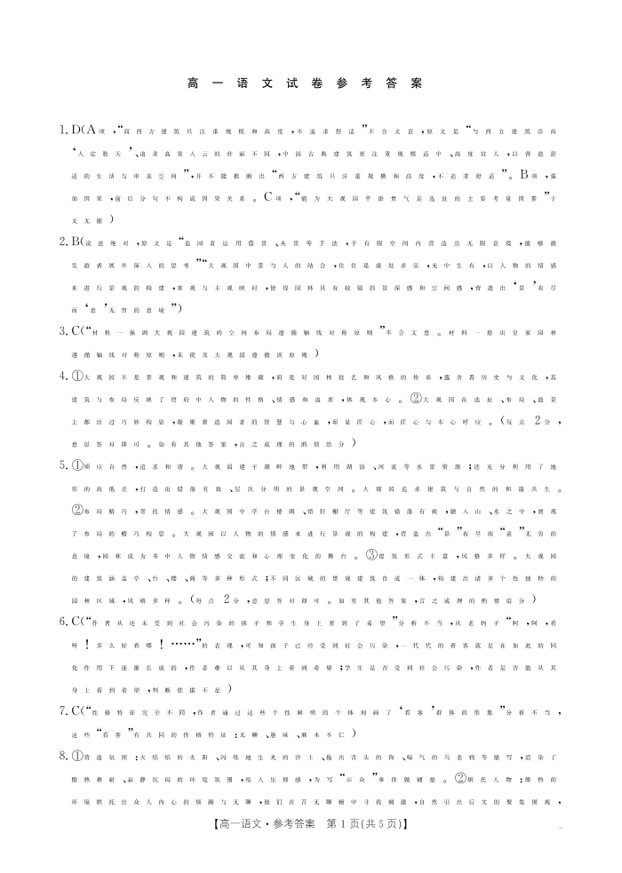 江西省2024-2025学年高一下学期6月联考语文答案