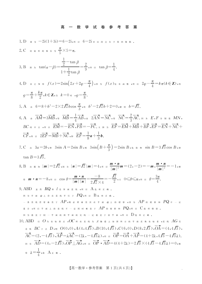江西省2024-2025学年高一下学期6月联考数学答案