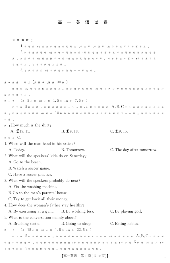 江西省2024-2025学年高一下学期6月联考英语