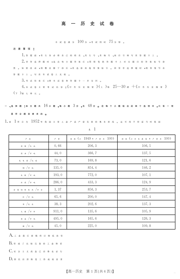 江西省2024-2025学年高一下学期6月联考历史