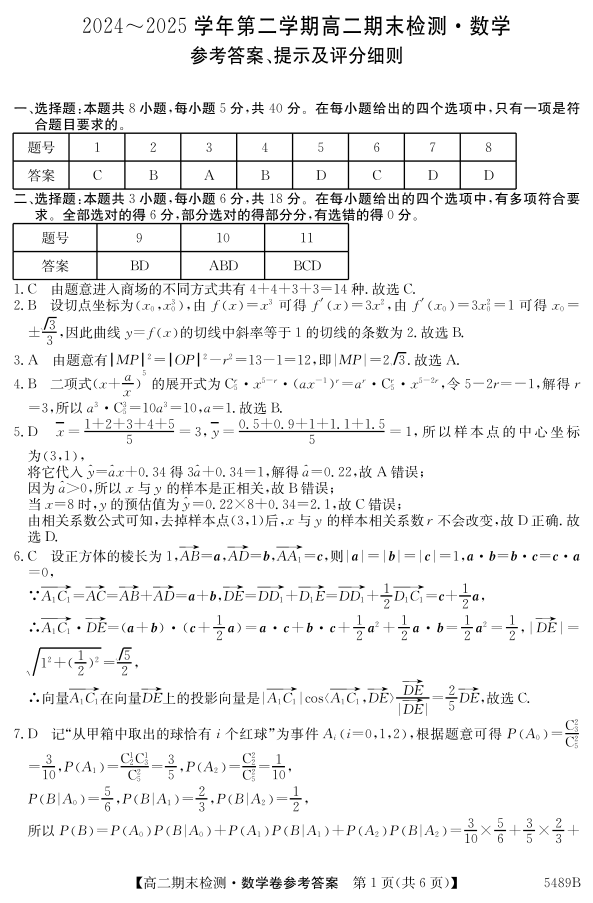 安徽省县中联盟2024-2025学年第二学期高二期末检测数学答案