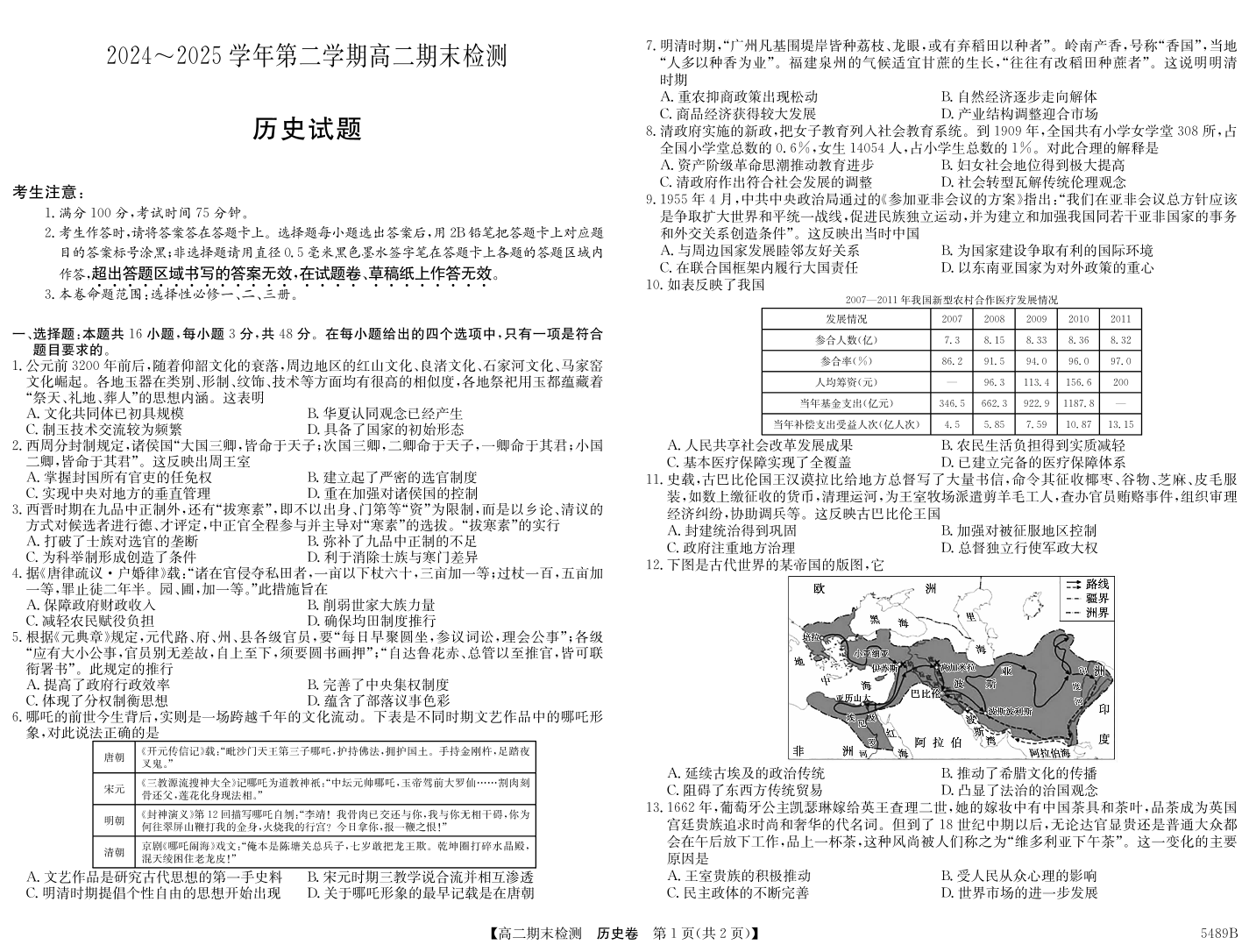 安徽省县中联盟2024-2025学年第二学期高二期末检测历史
