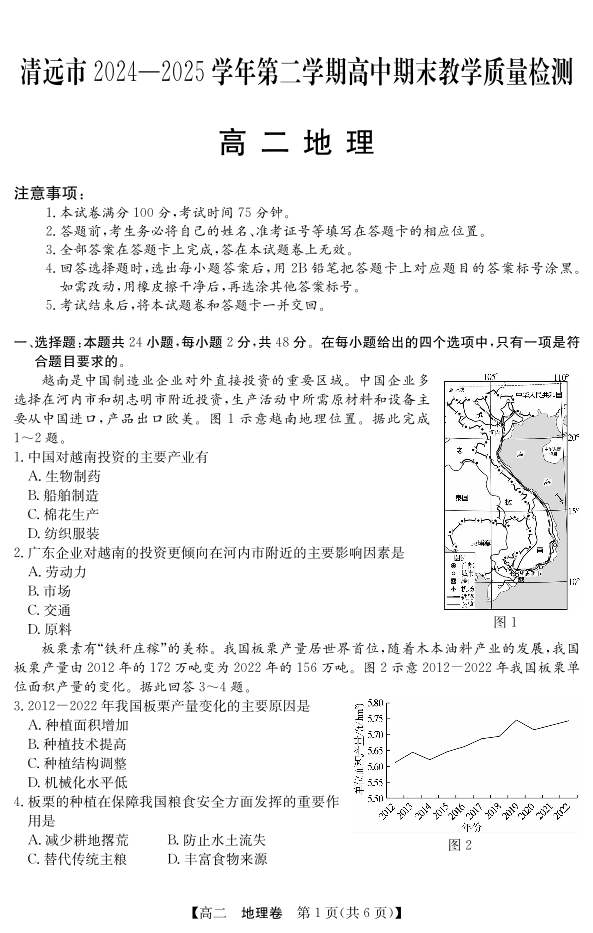 广东省清远市2024-2025学年第二学期高二期末教学质检地理