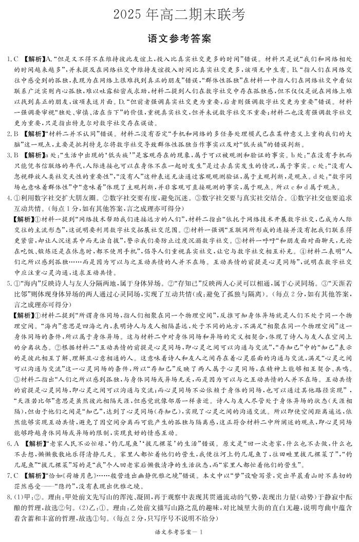 湖南新高考教学教研联盟暨长郡二十校联盟2025年高二年级下学期期末联考语文答案