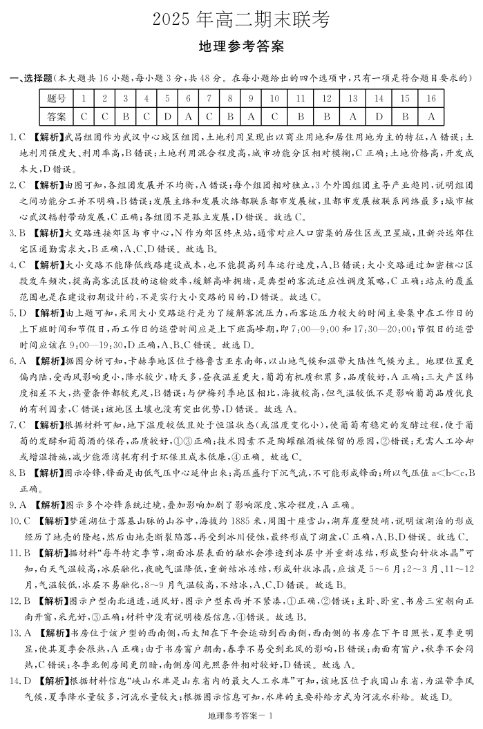 湖南新高考教学教研联盟暨长郡二十校联盟2025年高二年级下学期期末联考地理答案