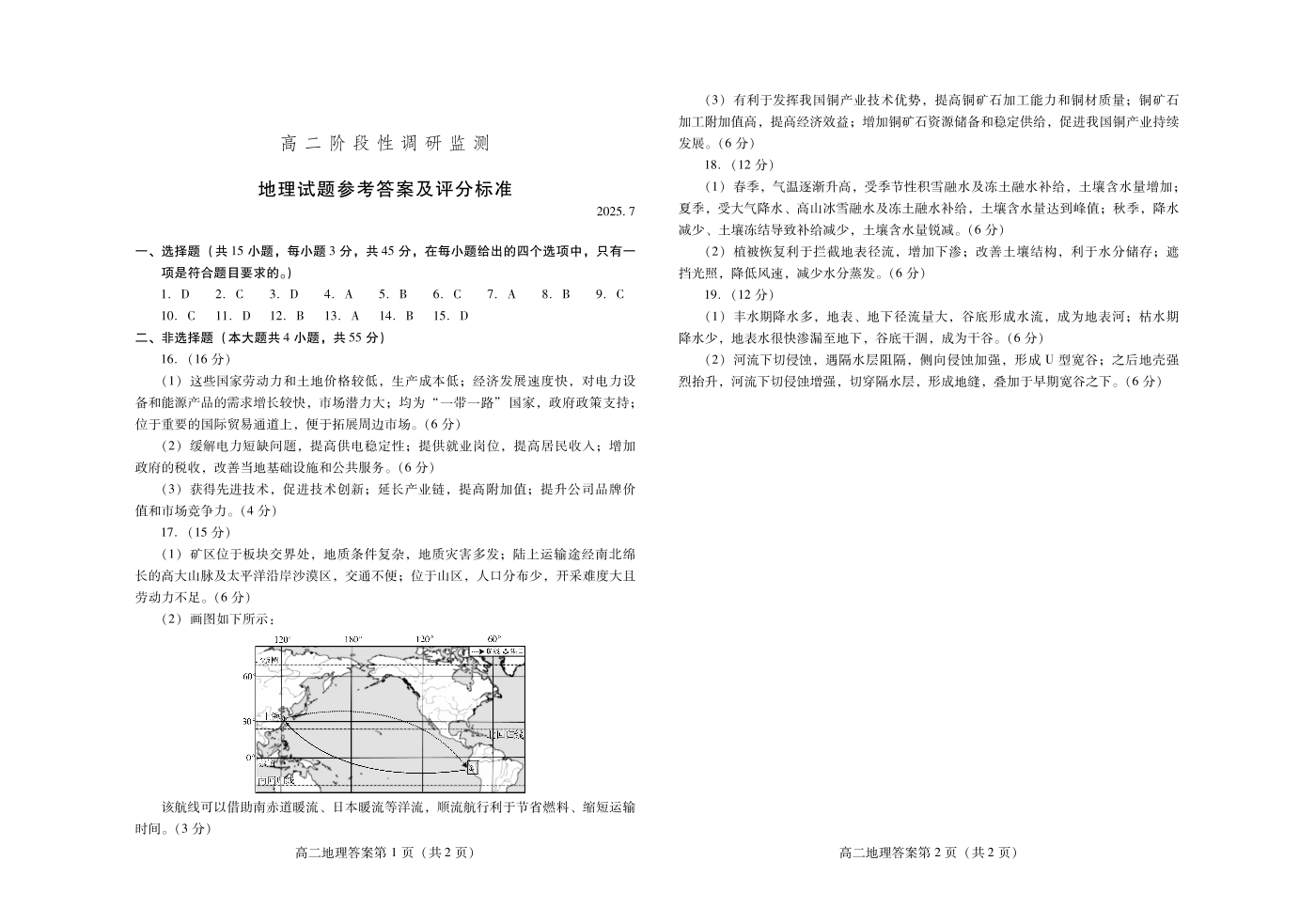 高二地理答案(山东省潍坊市2025.7阶段性调研监测)