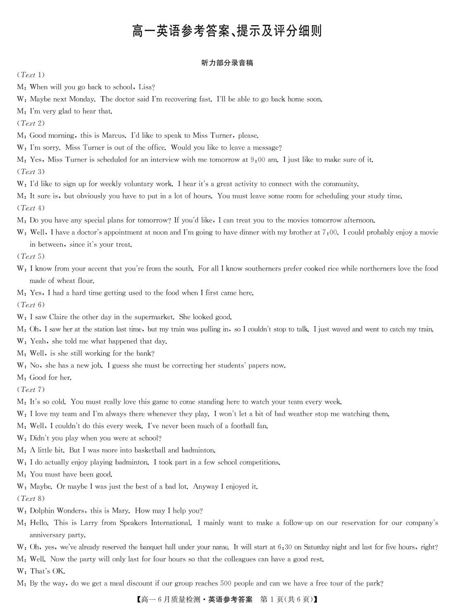 江西省九师联盟2024-2025学年高一下学期6月质量监测英语答案