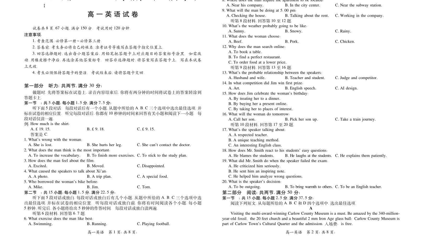 江西省上进教育联考2024-2025学年高一下学期期末考试英语+答案