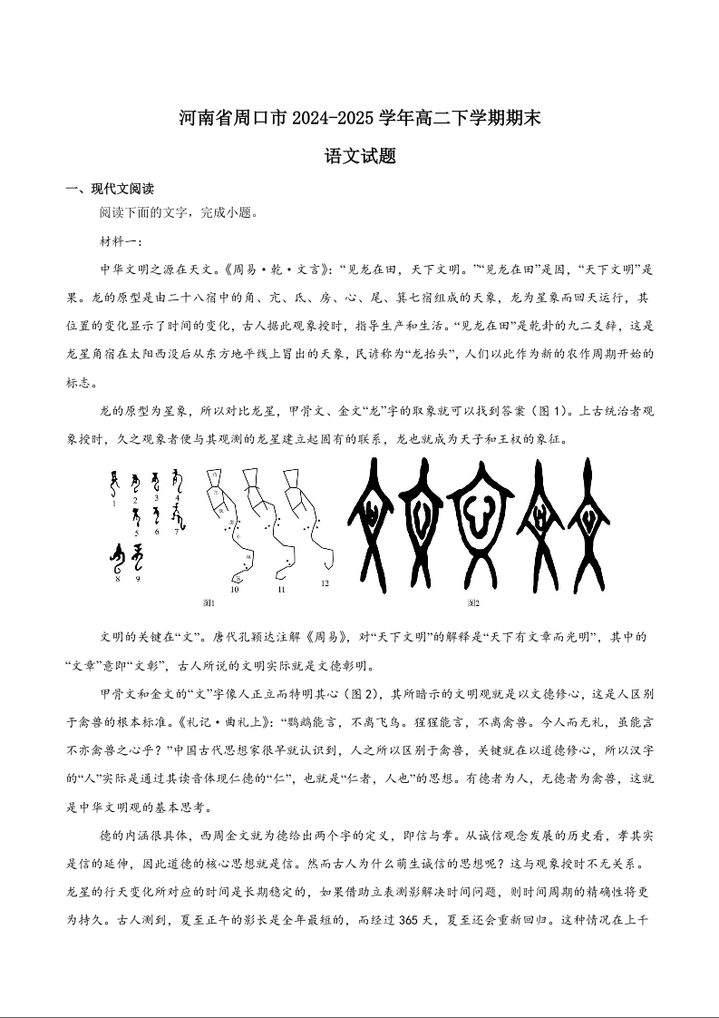 河南省周口市2024-2025学年高二下学期6月期末摸底考试语文+答案