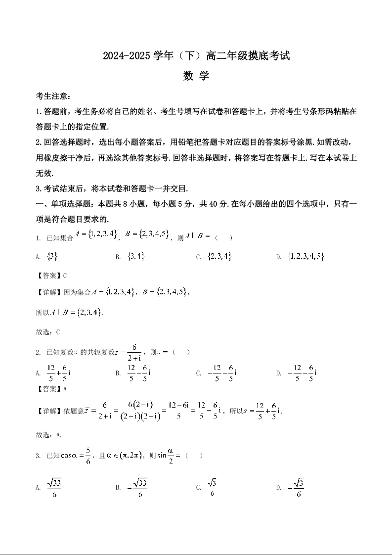河南省周口市2024-2025学年高二下学期6月期末摸底考试数学+答案