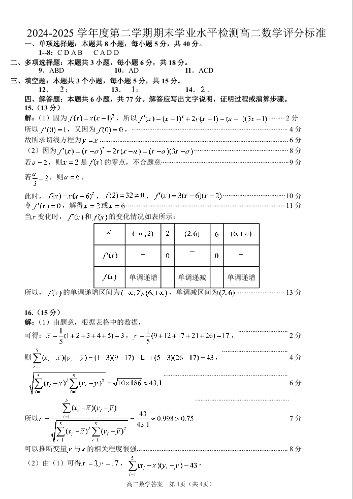 高二数学答案(山东省青岛区域2025.7高二期末检测)