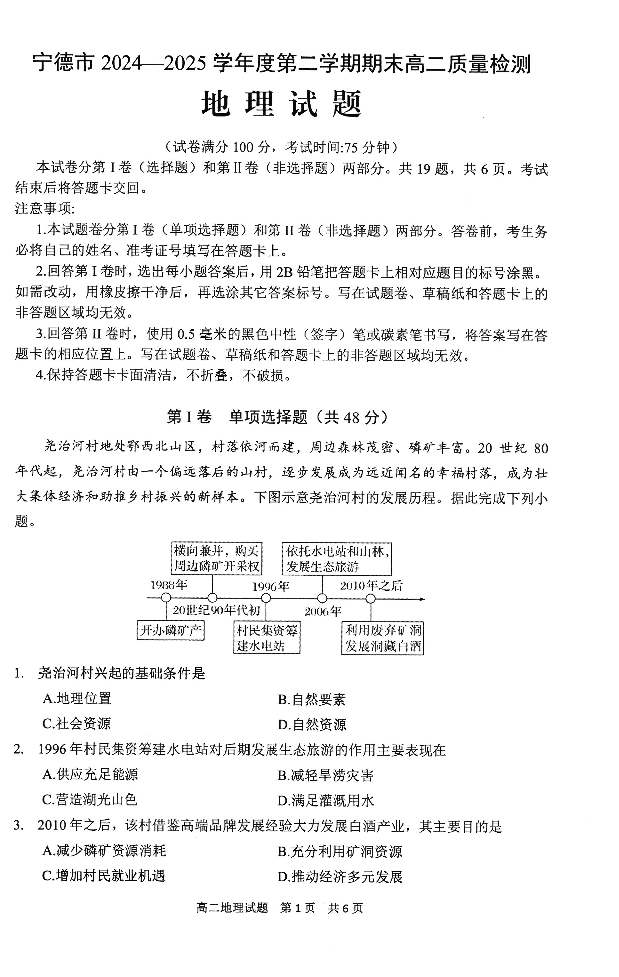 福建省宁德市2024-2025学年高二下学期6月期末考试地理