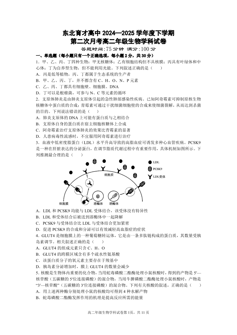 辽宁省沈阳市东北育才学校2024-2025学年高二下学期第二次月考生物+答案