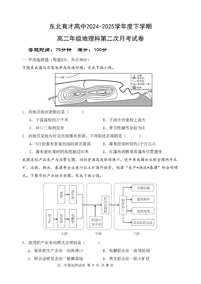 辽宁省沈阳市东北育才学校2024-2025学年高二下学期第二次月考地理