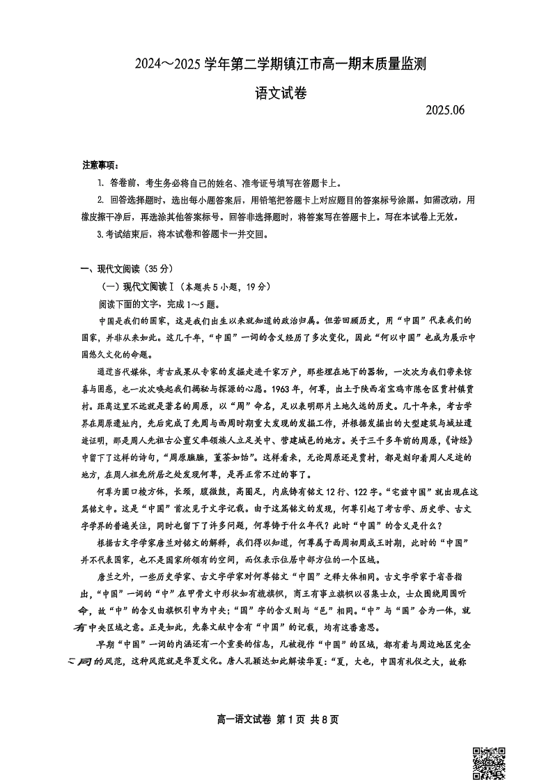 江苏省镇江市丹阳市2024-2025学年高一下学期6月期末考试语文
