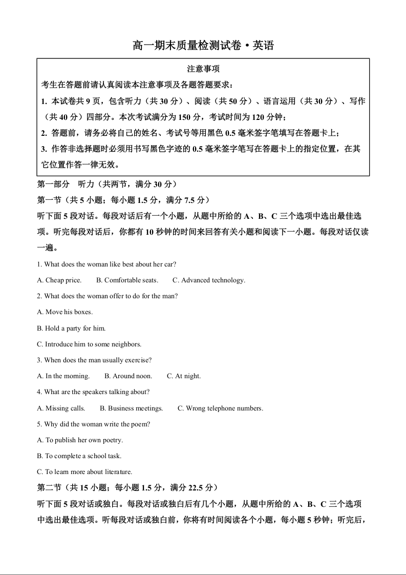 江苏省镇江市丹阳市2024-2025学年高一下学期6月期末考试英语+答案