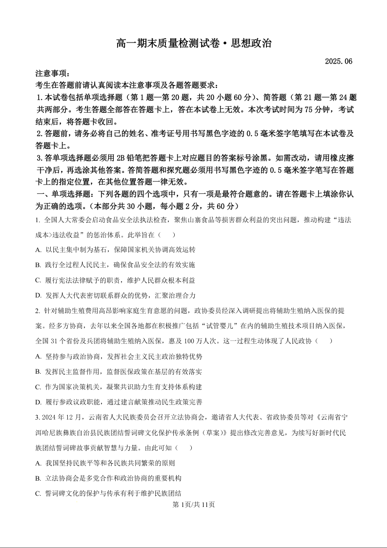 江苏省镇江市丹阳市2024-2025学年高一下学期6月期末考试政治+答案