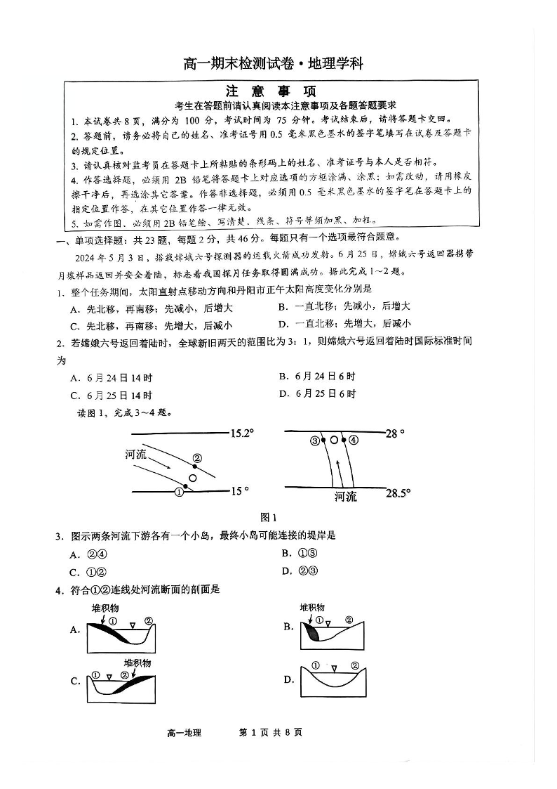 江苏省镇江市丹阳市2024-2025学年高一下学期6月期末考试地理+答案