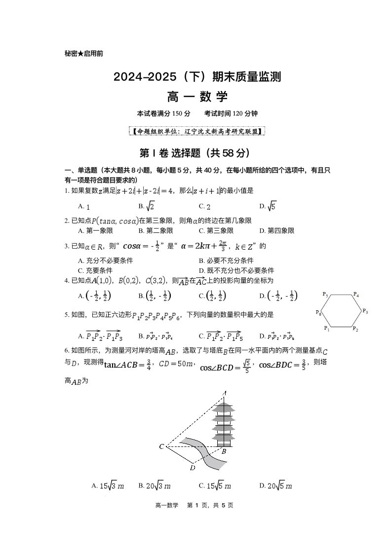 辽宁省沈文新高考研究联盟2024-2025学年高一下学期7月期末考试数学+答案
