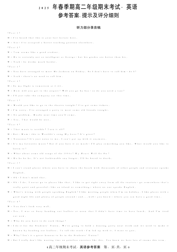 广西梧州市羽宸教育·新课程教研联盟暨2025年春季期高二年级7月期末考试英语答案