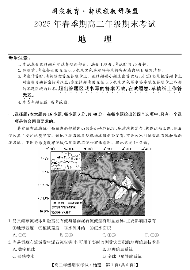 广西梧州市羽宸教育·新课程教研联盟暨2025年春季期高二年级7月期末考试地理