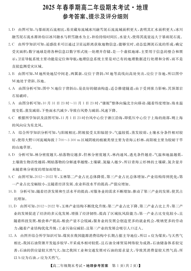 广西梧州市羽宸教育·新课程教研联盟暨2025年春季期高二年级7月期末考试地理答案
